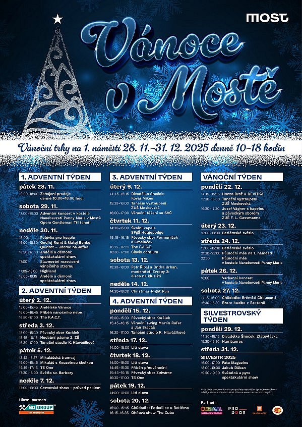 AKCE V MOSTĚ A OKOLÍ 30. 12. 2025 - 5. 1. 2026 JEDNODENNÍ AKCE Silvestr 2025 31. 12. 2025 16:00, 1. náměstí Ostatní 16:00 - 17:00 Fate Magazine18:00 ...